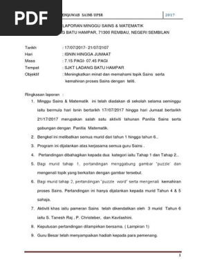 SEKOLAH KEBANGSAAN BESOUT 5 35600 SUNGKAI PERAK DARUL RIDZUAN KERTAS KERJA PROGRAM MINGGU SAINS DAN MATEMATIK 2016 TARIKH. Mudah-mudahan dapat membantu rakan guru di luar sana dalam mencari idea. January 30 2021 by tchercollection.